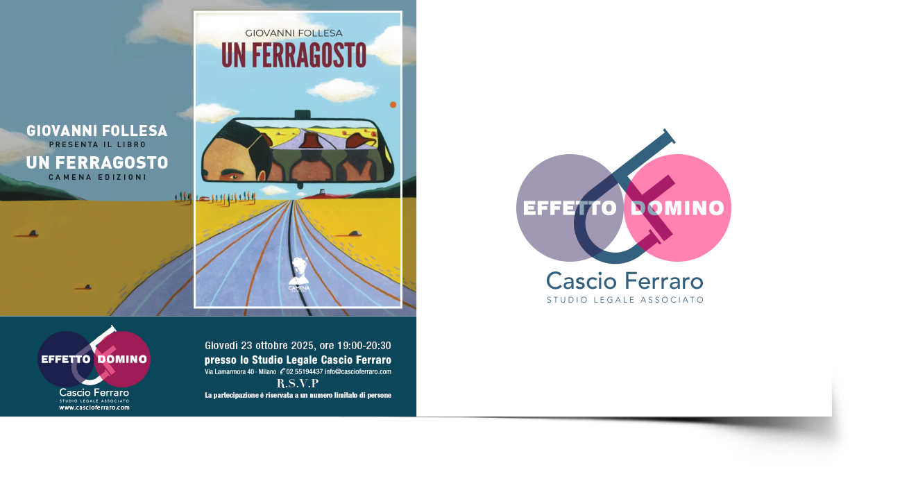 Effetto Domino è il nome di un cenacolo di idee e di ideali, più che il titolo dei cicli di conferenze e di eventi organizzati dallo Studio Cascio Ferraro. Gli incontri avvengono nella sede dello Studio, sono aperti ad un limitato numero di partecipanti e incentivano lo scambio di conoscenze e di stimoli culturali tra esperti di diversi settori della cultura.