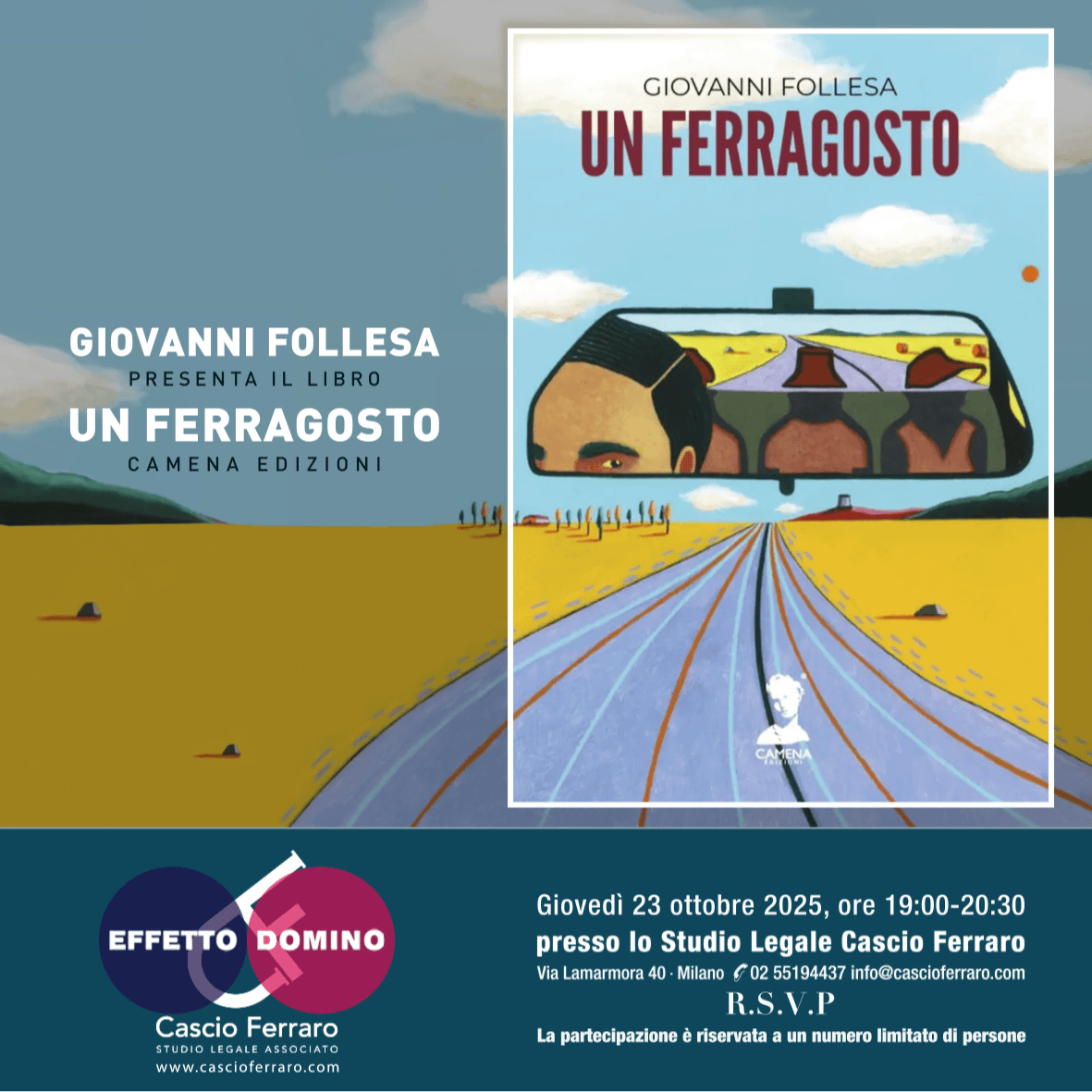 Effetto Domino” (“Domino Effect”) is the name of a community of ideas and ideals, rather than just the title of the conferences and events calendar organized by the Law Firm of Cascio & Ferraro. The meetings take place at the Firm’s main offices in Milan and are open to a limited number of participants. Their aim is to encourage the exchange of knowledge and cultural stimuli between and among experts from various fields of culture and knowledge.
